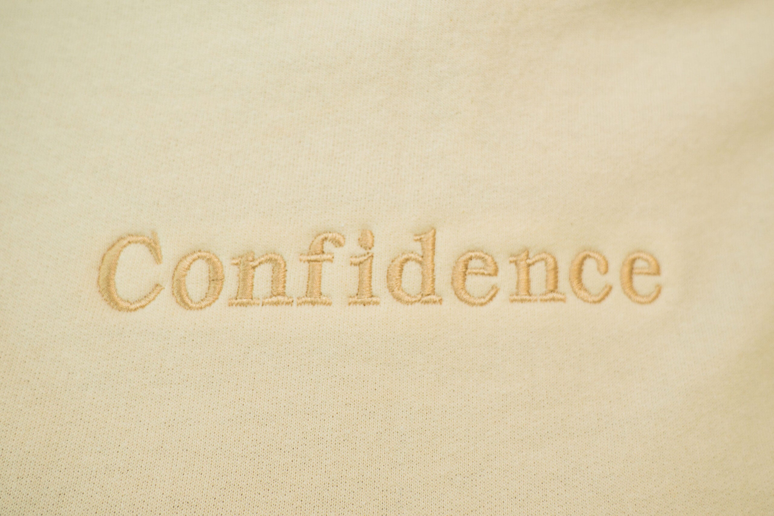 Style: Crewneck sweatshirt with embroidered “Confidence” detail