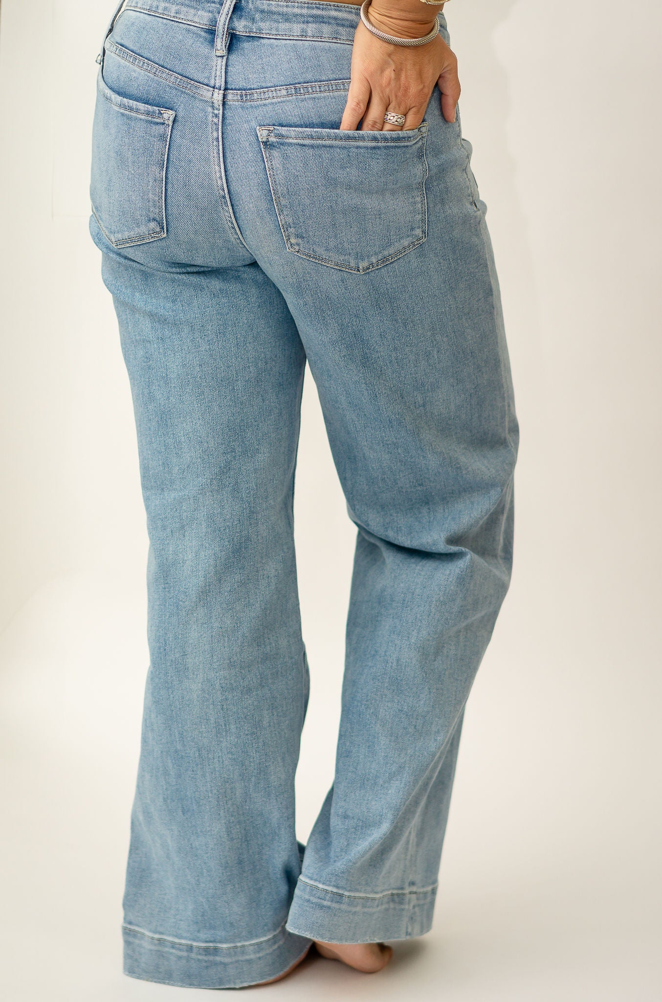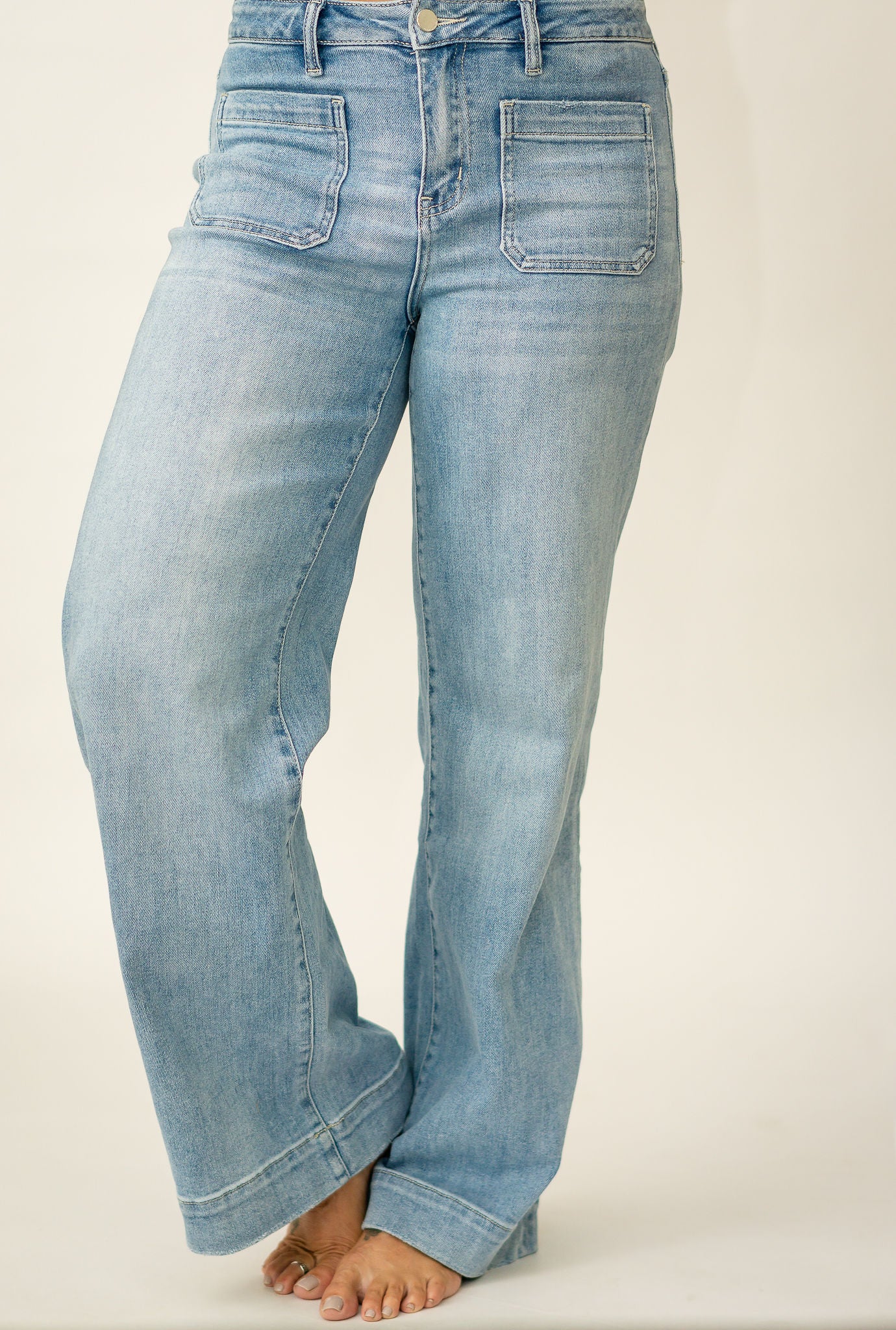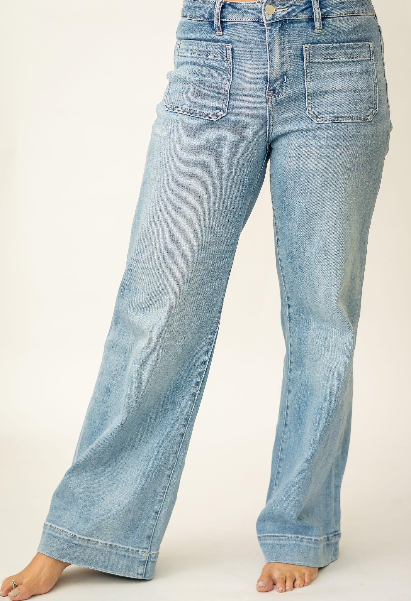 The Knox Jeans are your new everyday essential with a touch of retro charm. Designed in a soft light wash, they feature front patch pockets and a flattering high-rise waist that gives just the right amount of structure. The wide-leg cut keeps the look relaxed and easy, perfect for pairing with tees, blouses, or sweaters all season long. Comfortable, versatile, and timeless — these jeans are made to move with you.