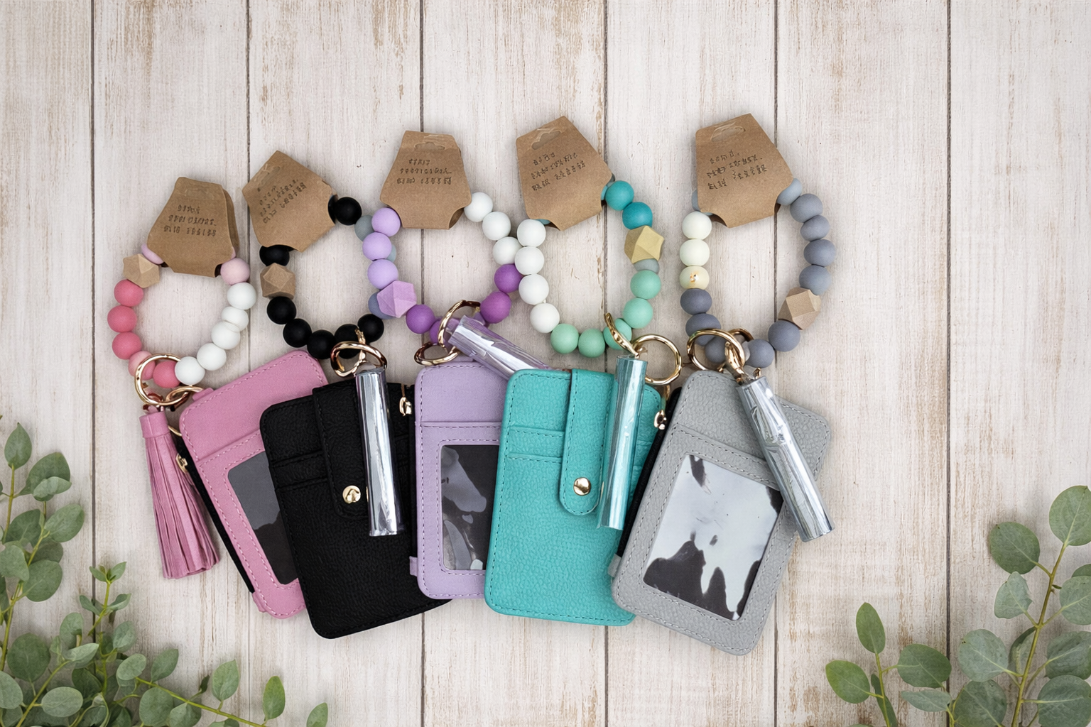 Keep your essentials close and your hands free with these stylish wristlets. Each piece combines a durable faux-leather card holder with a soft, stretchable beaded bracelet for effortless wear. The attached keyring makes it easy to clip on your keys, ID, or small must-haves while adding a pop of color and charm to your everyday look.